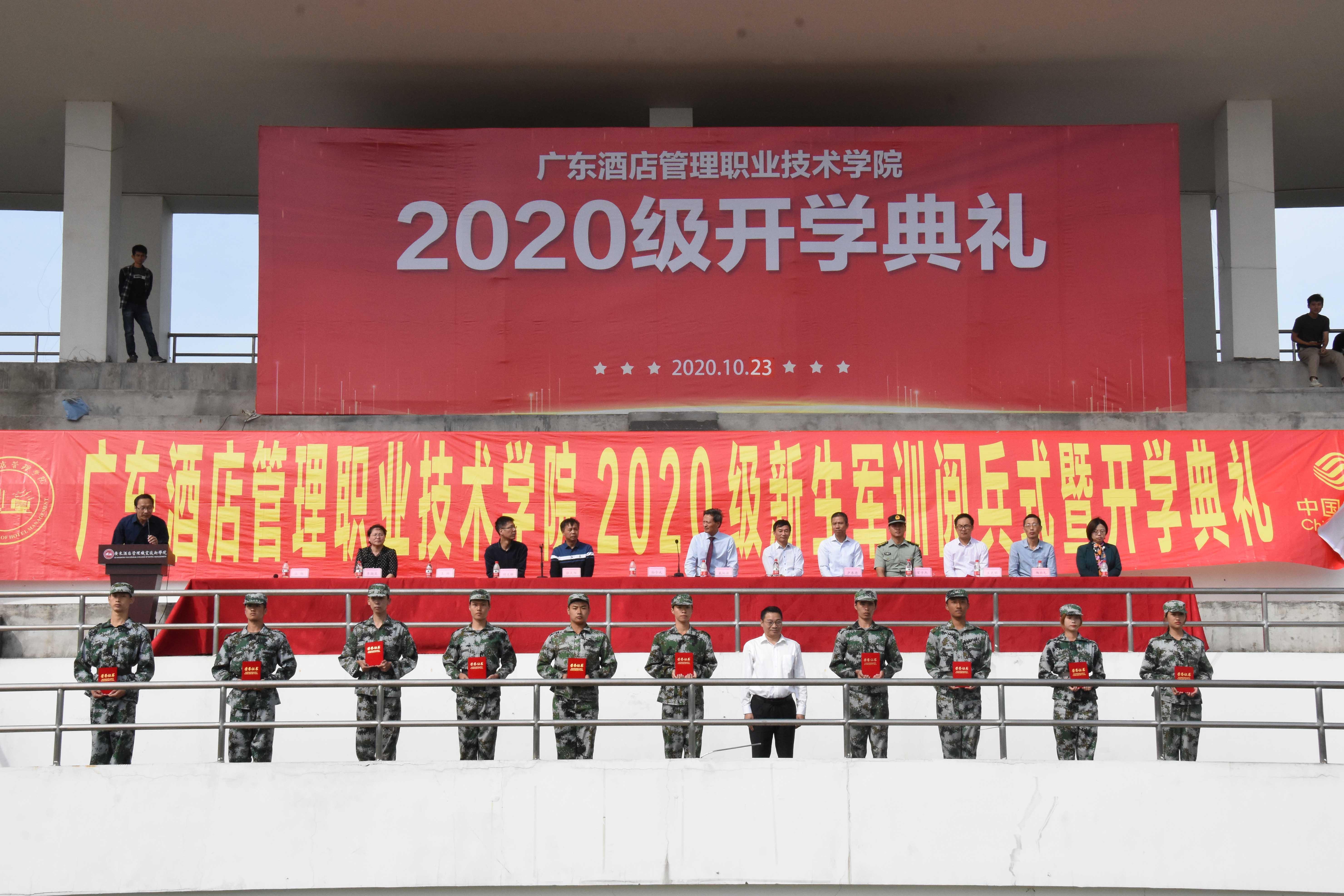 【本校消息】10月23日,广东酒店管理职业技术学院2020级新生军训阅兵式暨开学典礼在田径运动场上隆重举行。学校领导班子、相关职能部门与各学院负责人、全体教官、全体辅导员以及2020级新生参加了本次大会。