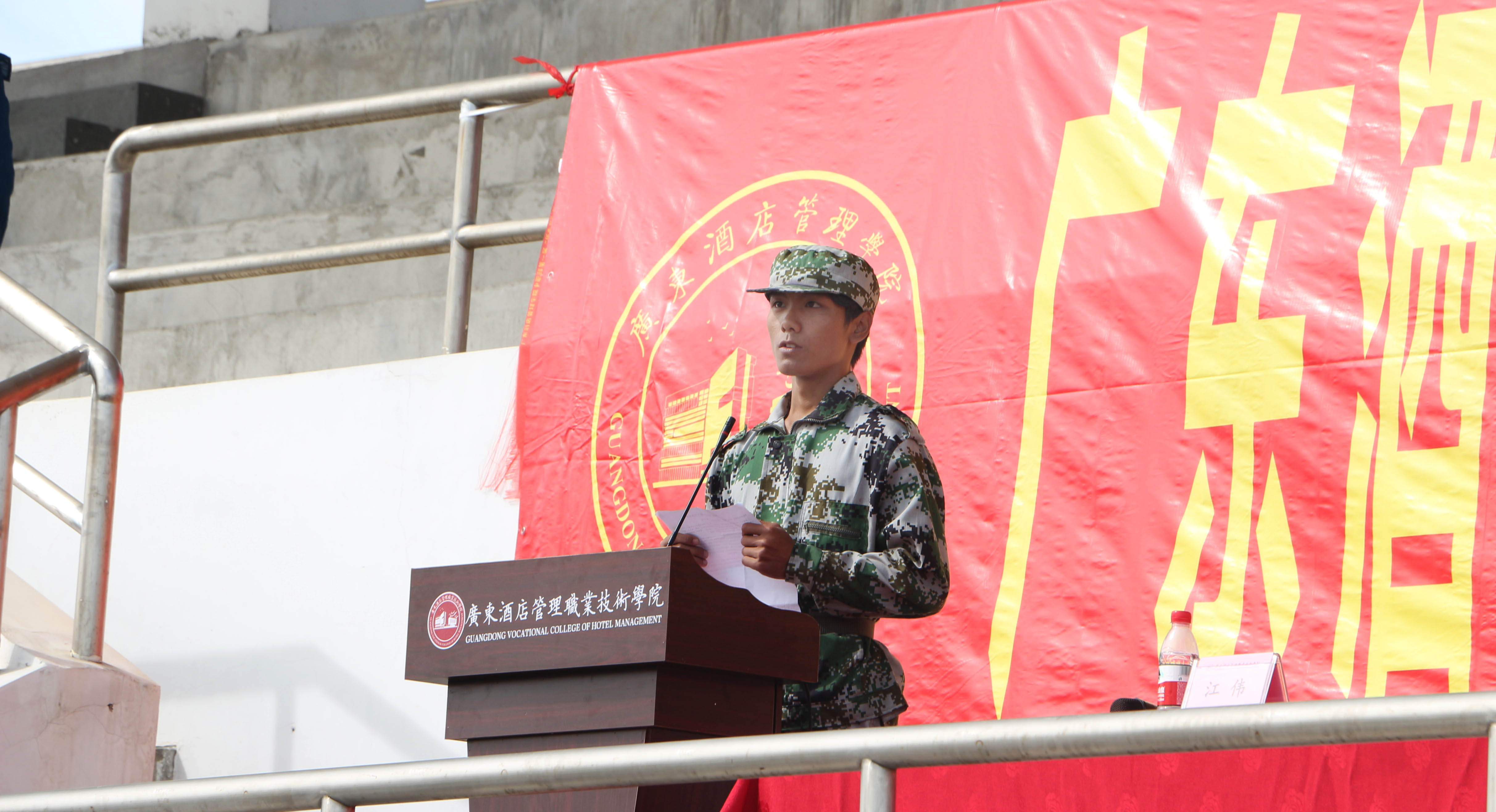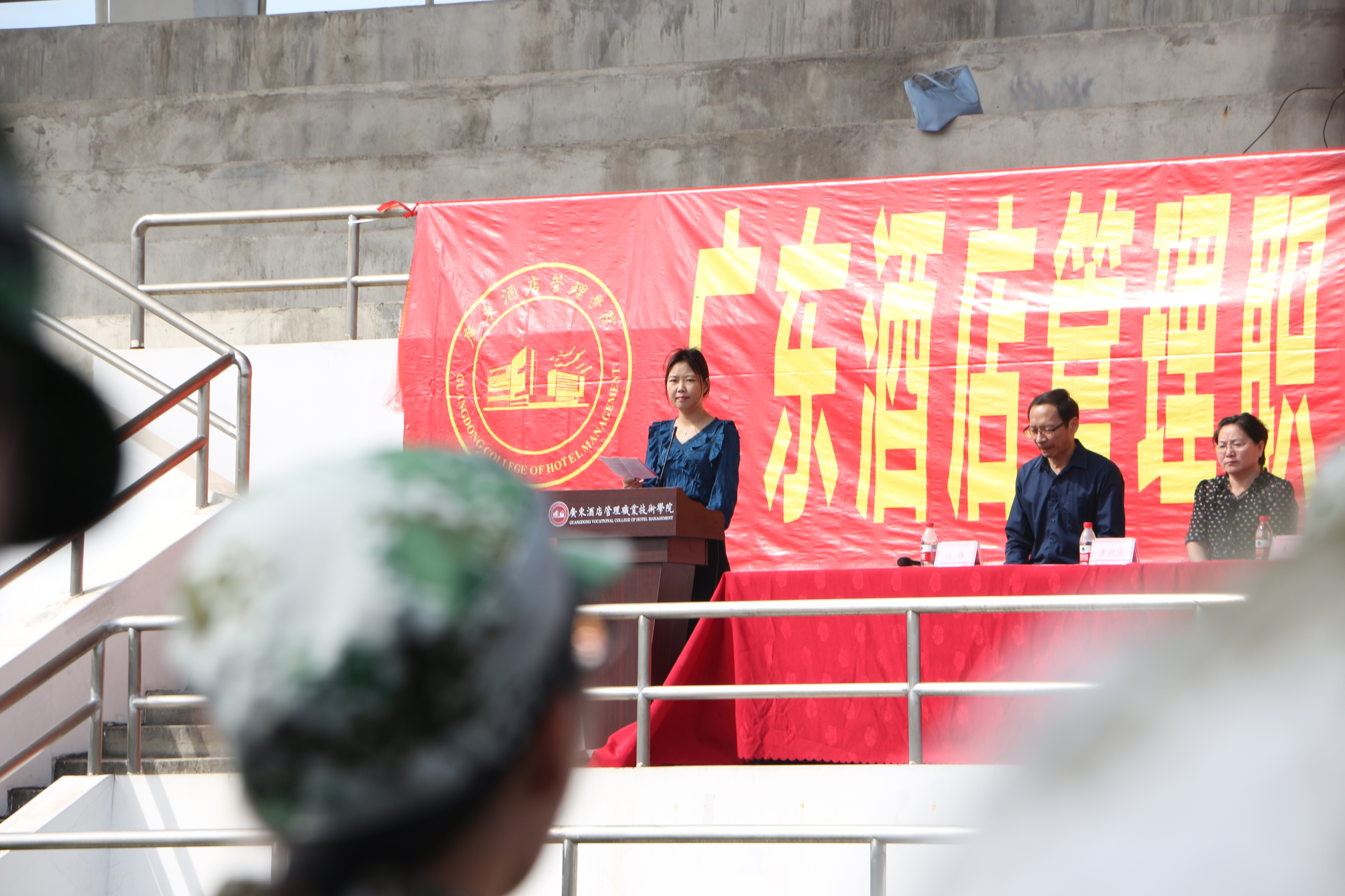 酒店与旅游学院张倩作为教师代表进行发言。“军训,让我们拥有战胜困难呢勇气;军训让我们懂得了团结互助的力量;军训开启了你们青春新的篇章。”她寄语新生继续发扬军训中不怕苦、不怕累的精神,谨记“德能并进,学以致用”的校训,为自己将来步入社会、走入理想的工作岗位奠定坚实的基础。
