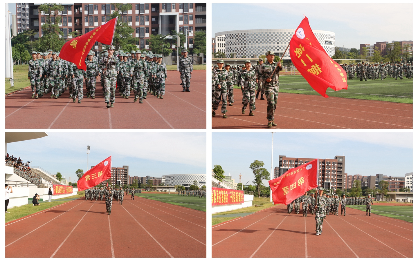 随后,军训团总教官官子杰主持阅兵和军训成果汇报表演。2020级全体新生各方队进行分列式、拳术表演、匕首操表演、手语操、花样队列展示等军训成果展示,充分展示了新生艰苦训练的豪情和青春蓬勃的朝气。