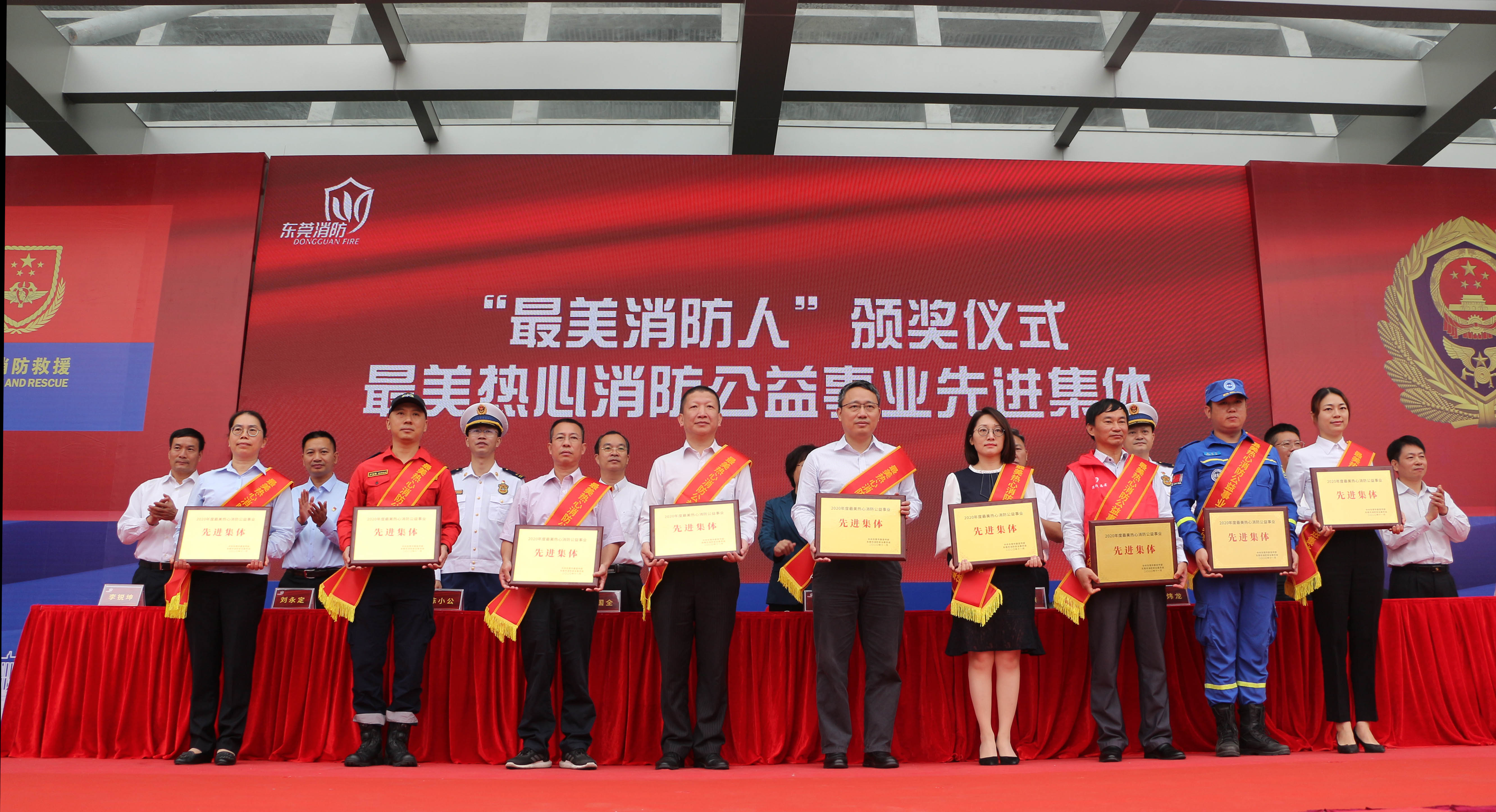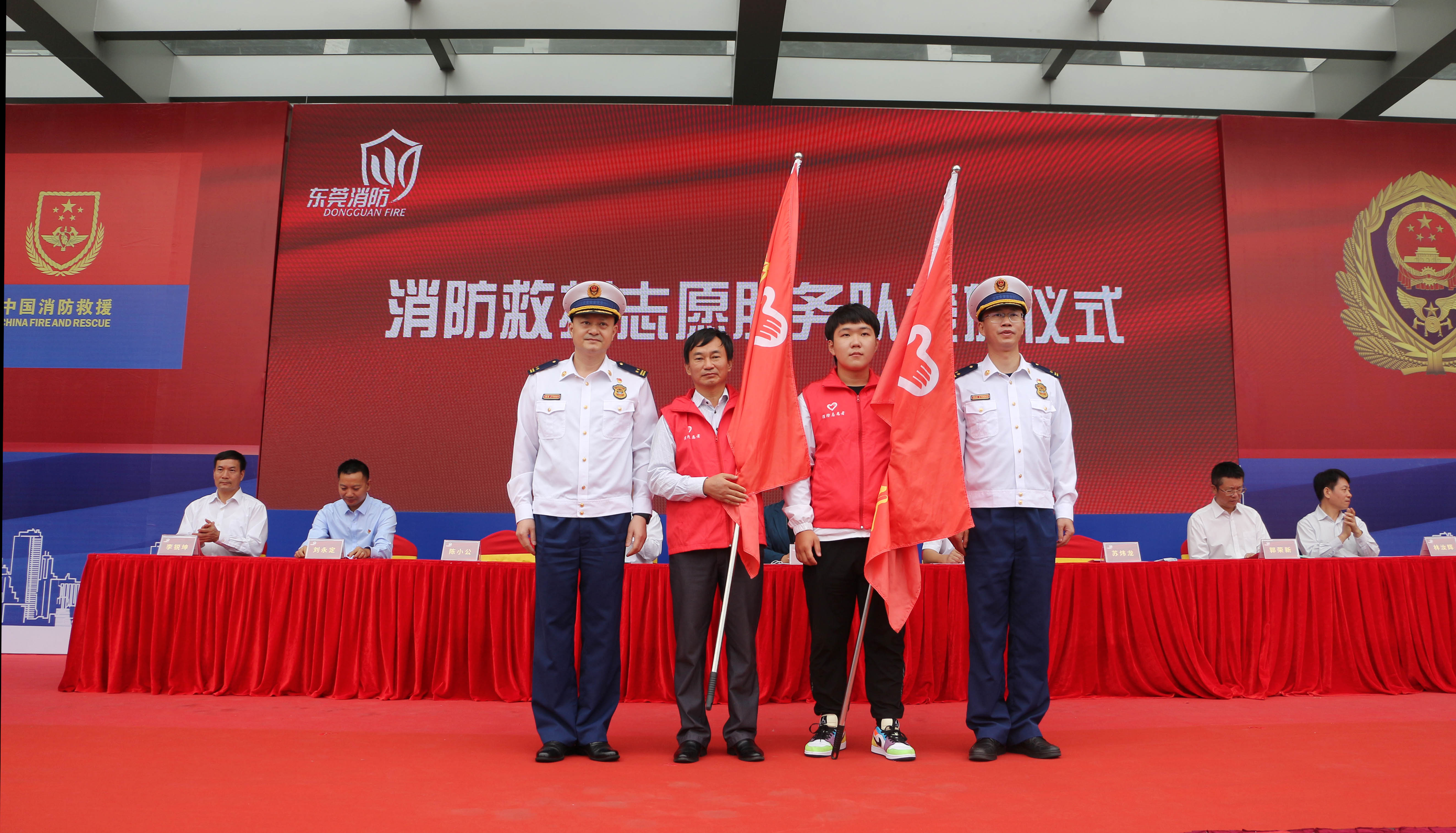 【本校消息】11月4日,2020东莞“119”消防宣传月活动启动仪式在东莞市民服务中心举行。启动仪式上,我校荣获2020年度最美热心消防公益先进集体荣誉称号,副校长覃家君作为消防救援志愿者代表参加消防志愿服务队的授旗仪式。