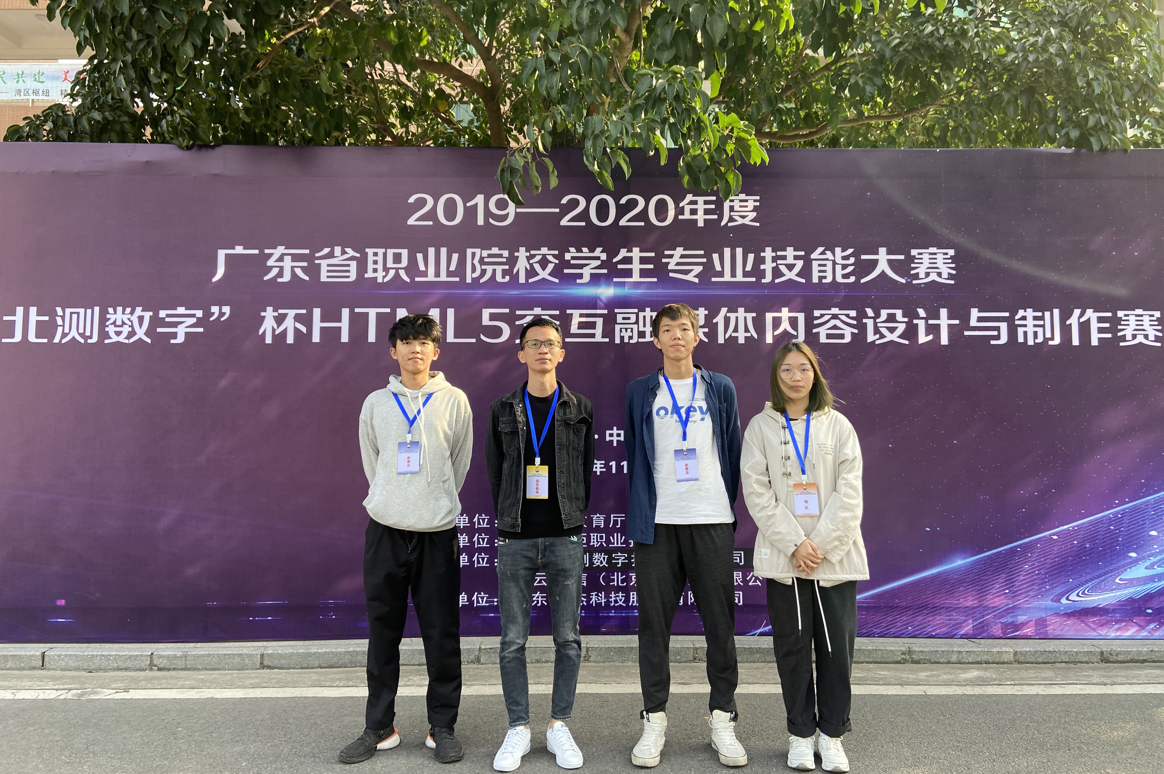 【本校消息】近日,由广东省教育厅主办的2019-2020年度广东省职业院校技能大赛(高职组)HTML5交互融媒体内容设计与制作赛项圆满举办。在我校人工智能系梁剑和邓任锋两位老师的指导下,由陆京春、刘泳帆、陈诗琪三位同学组成的广酒学生代表队在本次大赛中荣获三等奖。