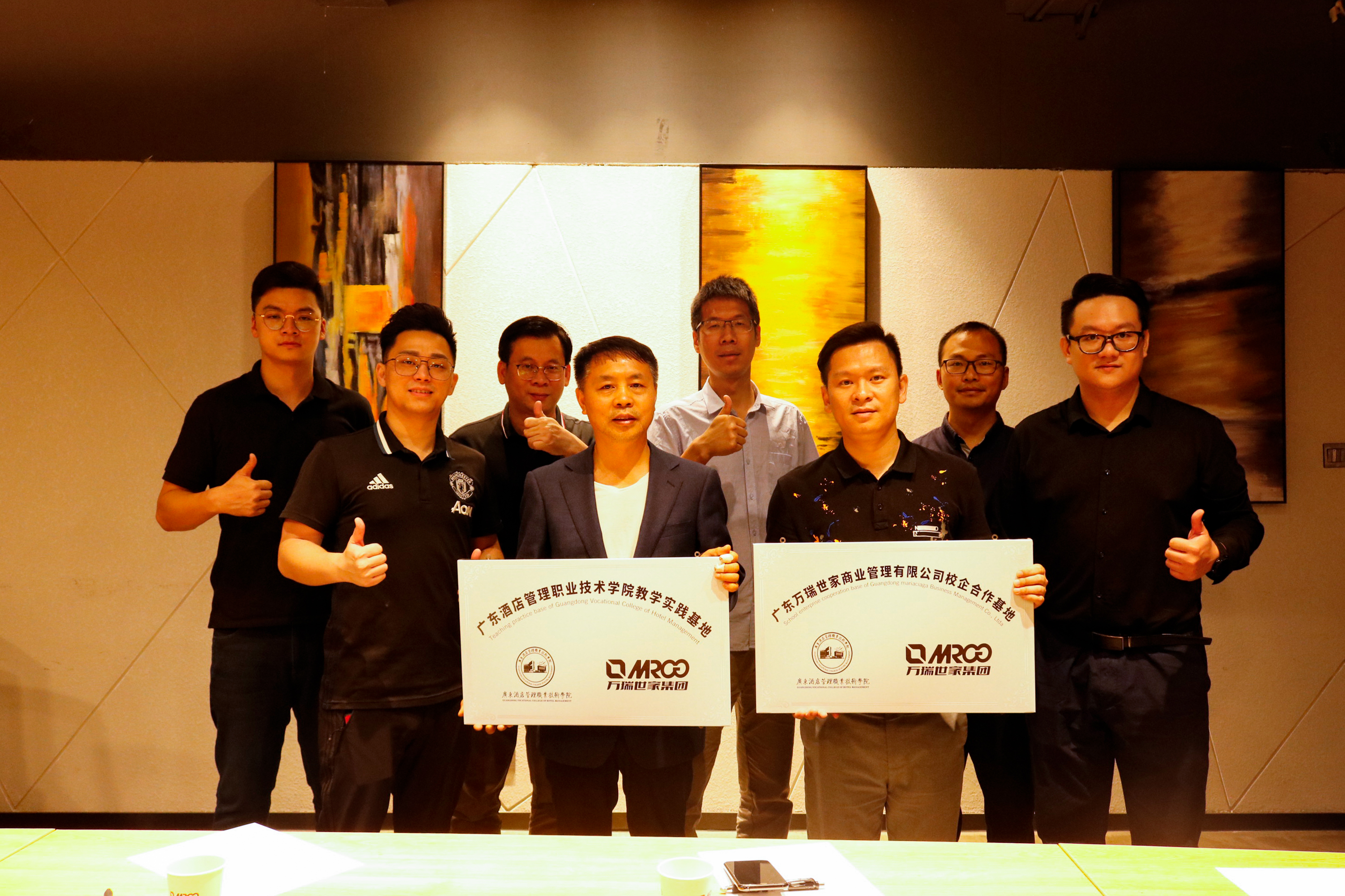 接下来,双方举行了隆重的校企合作授牌仪式,广东酒店管理职业技术学院副校长张天阳代表校方授予万瑞商管院“广东酒店管理职业技术学院教学实践基地”,万瑞商管院副院长李秉徽代表集团授予学院“广东万瑞世家商业管理有限公司校企合作基地”。
