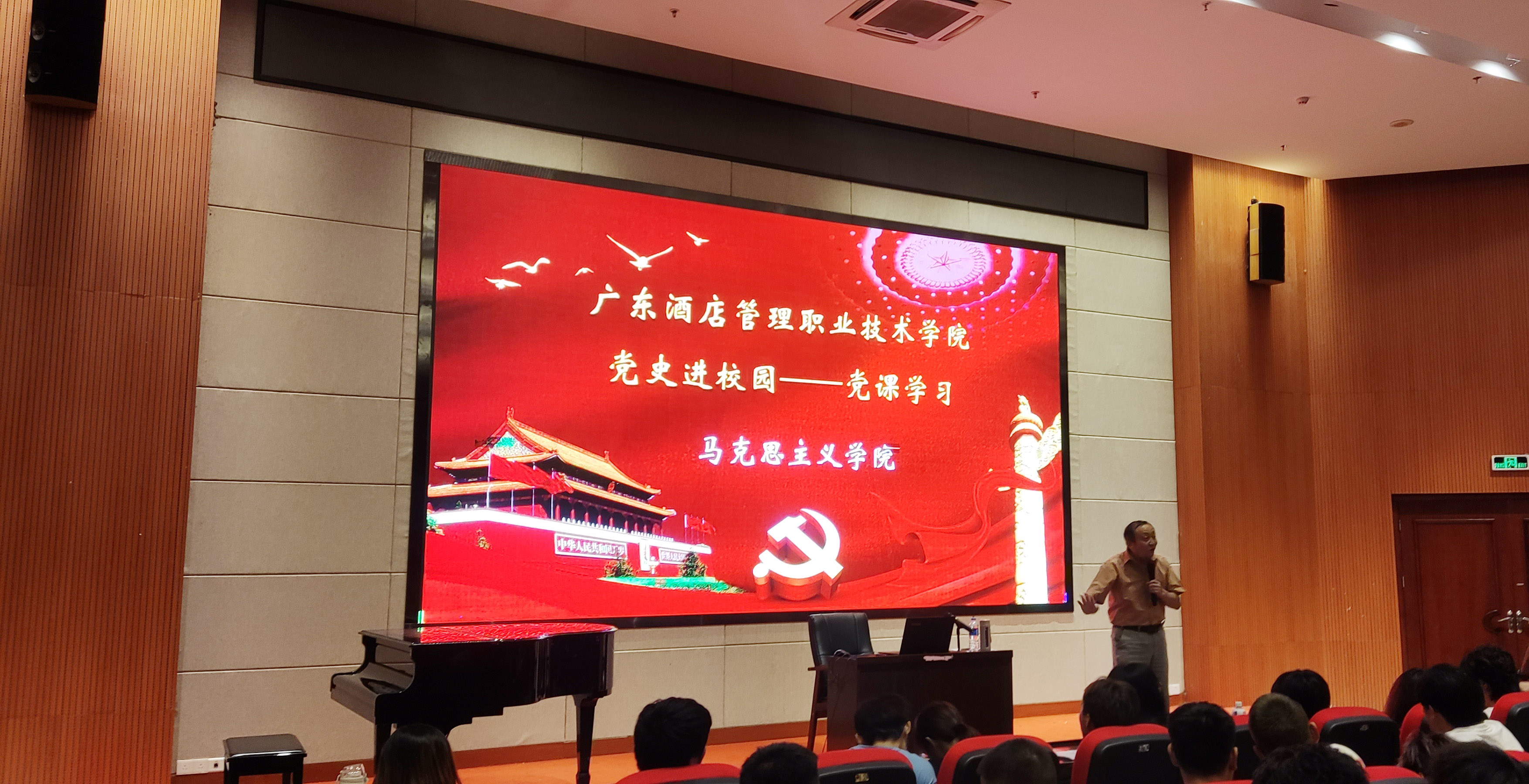 【本校消息】忆往昔岁月,多少峥嵘壮举;学百年党史,践行初心使命。为进一步深化党史进校园活动,引导青年大学生学史明理、学史增信、学史崇德、学史力行,6月17日下午,广东酒店管理职业技术学院马克思主义学院在学术报告厅,为近百名师生开展了一堂“别开生面”的党史公开课。