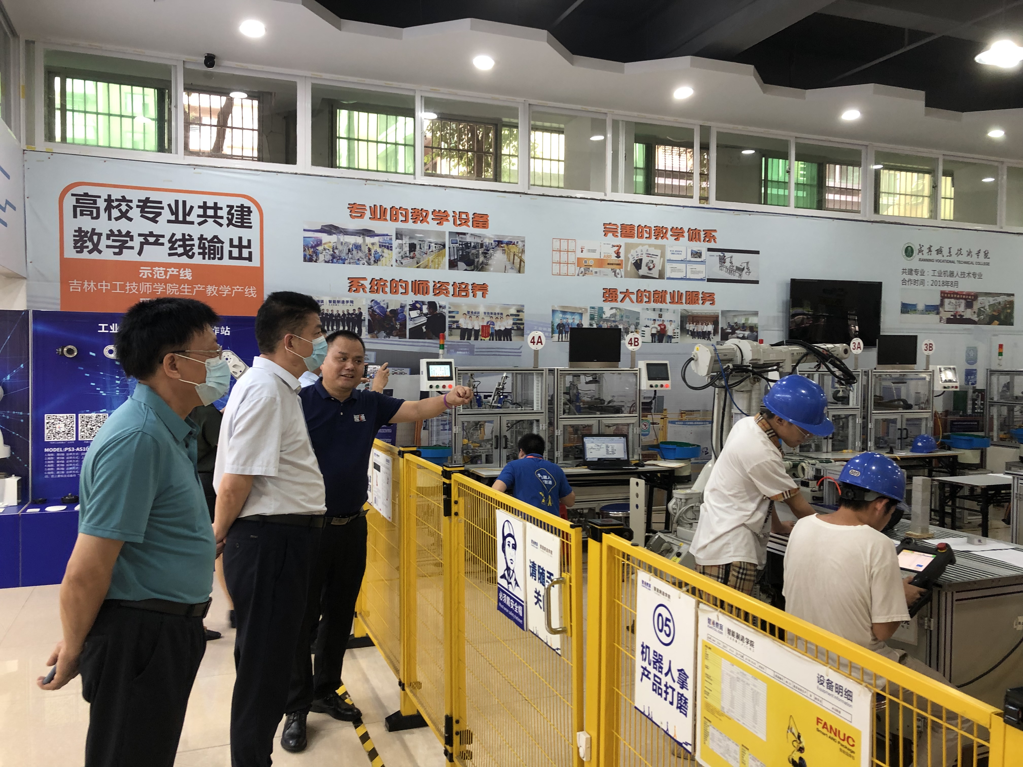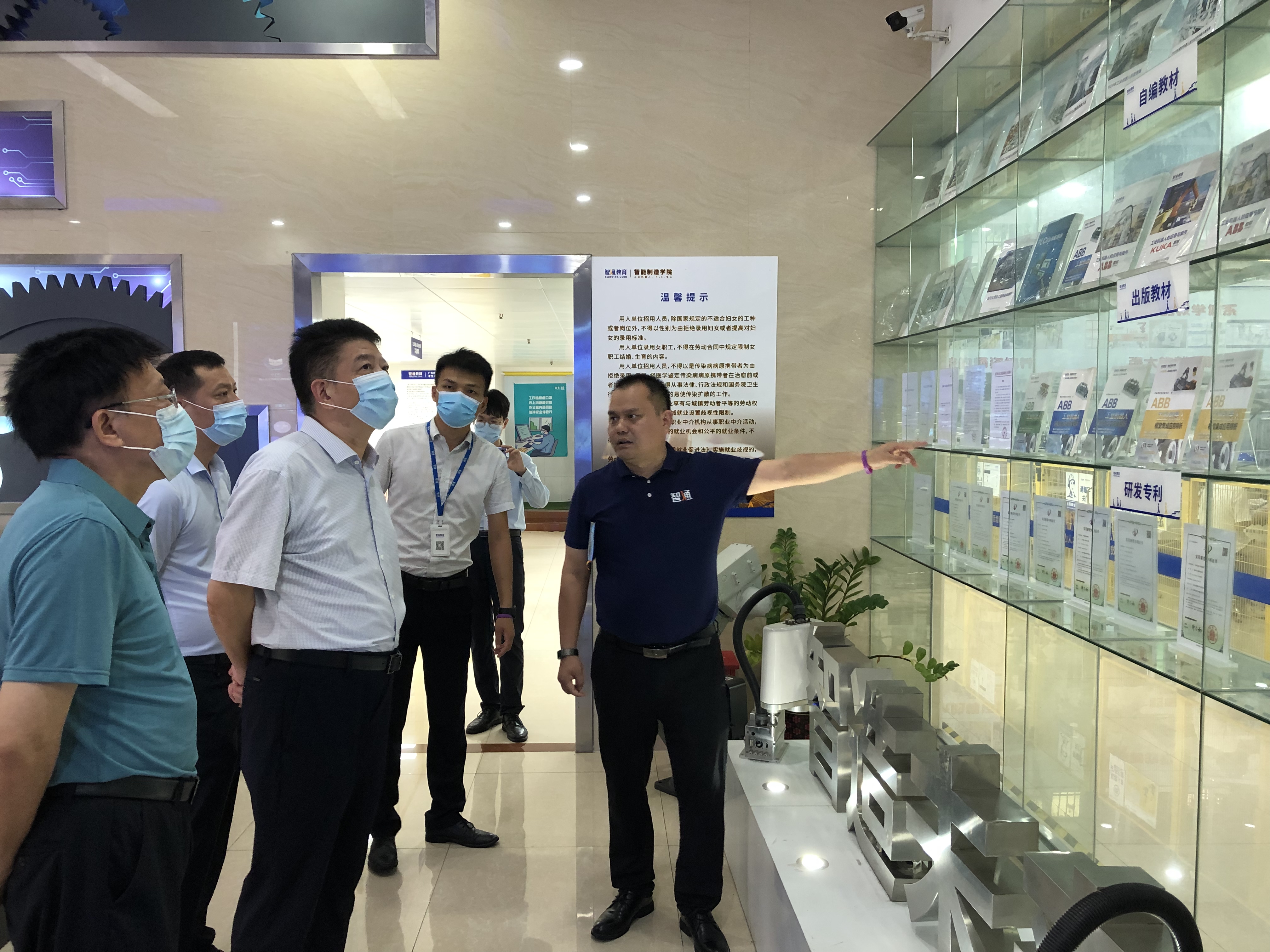 校领导一行先后参观了智通培训、智通教育、智通快聘、智通智能制造实训车间、技能系统操作员实操考场等项目,集团项目公司总经理李向阳为大家详细介绍了集团在技术研发、课程建设、教学设备、技能大赛、人才猎头等主营业务。