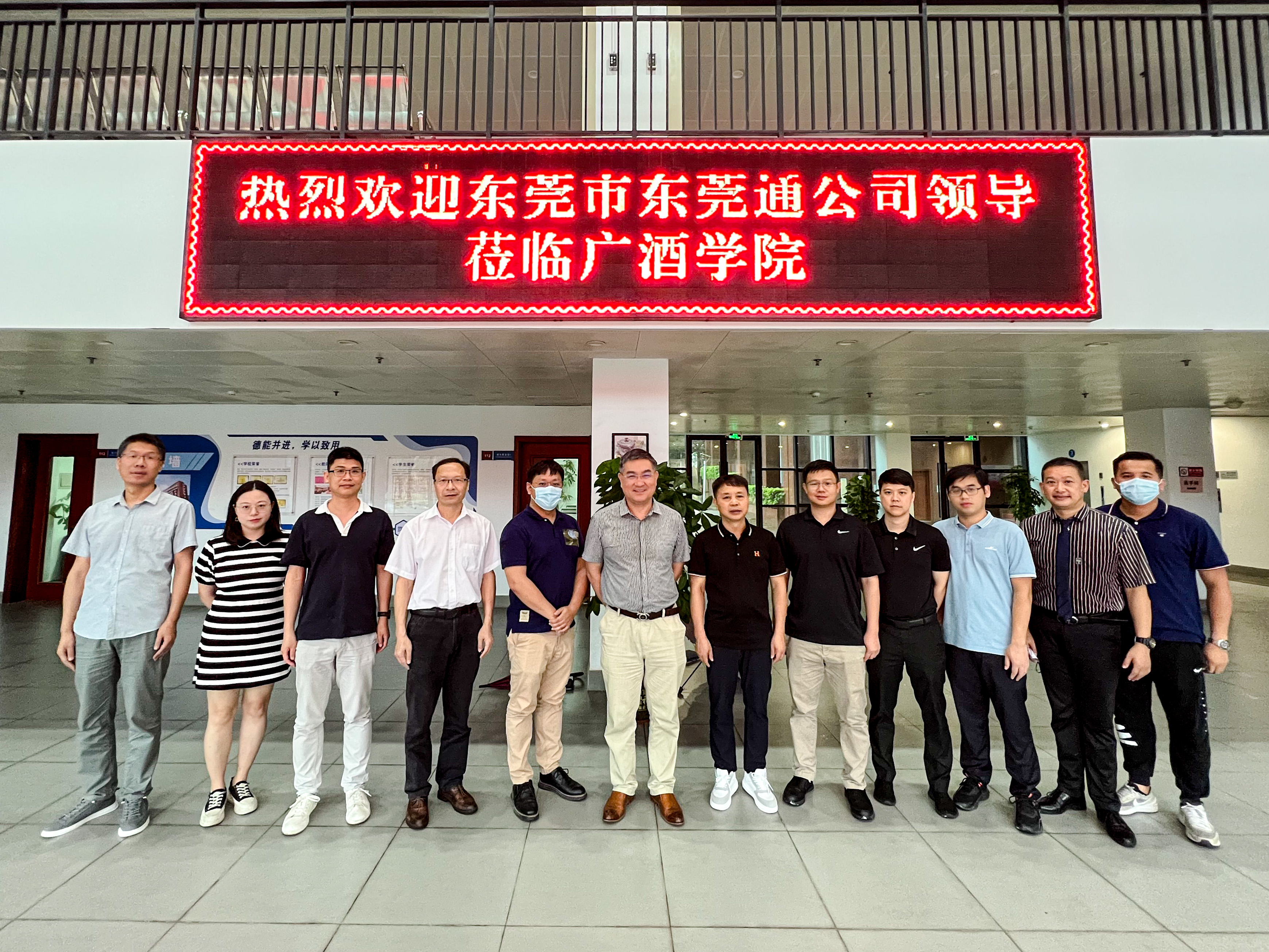 6月14日,东莞市交投集团副总经理、东莞通公司董事长方文革带队,携东莞通公司副总经理伍俊杰等一行四人到访广东酒店管理职业技术学院,就推进东莞市轨道交通服务应用型人才培养、智慧校园卡等合作事宜,与广酒学院董事、副校长张天阳、党委副书记江伟、相关职能部门及二级学院负责人进行了深入的、富有成效的座谈交流。