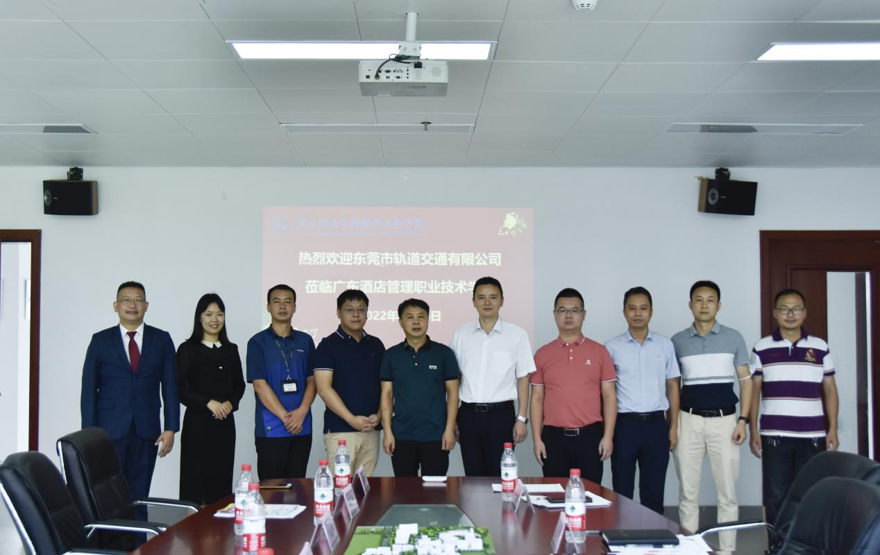 8月26日,东莞市轨道交通集团公司人力资源部副部长兼培训评价中心副主任郭京波、主管陈小龙、运营分公司车务部副经理裘能、服务管理室主任赖书科一行莅临广酒学院参观交流。我校副校长张天阳、酒店与旅游学院院长吴春华、继续教育学院常务副院长陈庆新等热情接待。