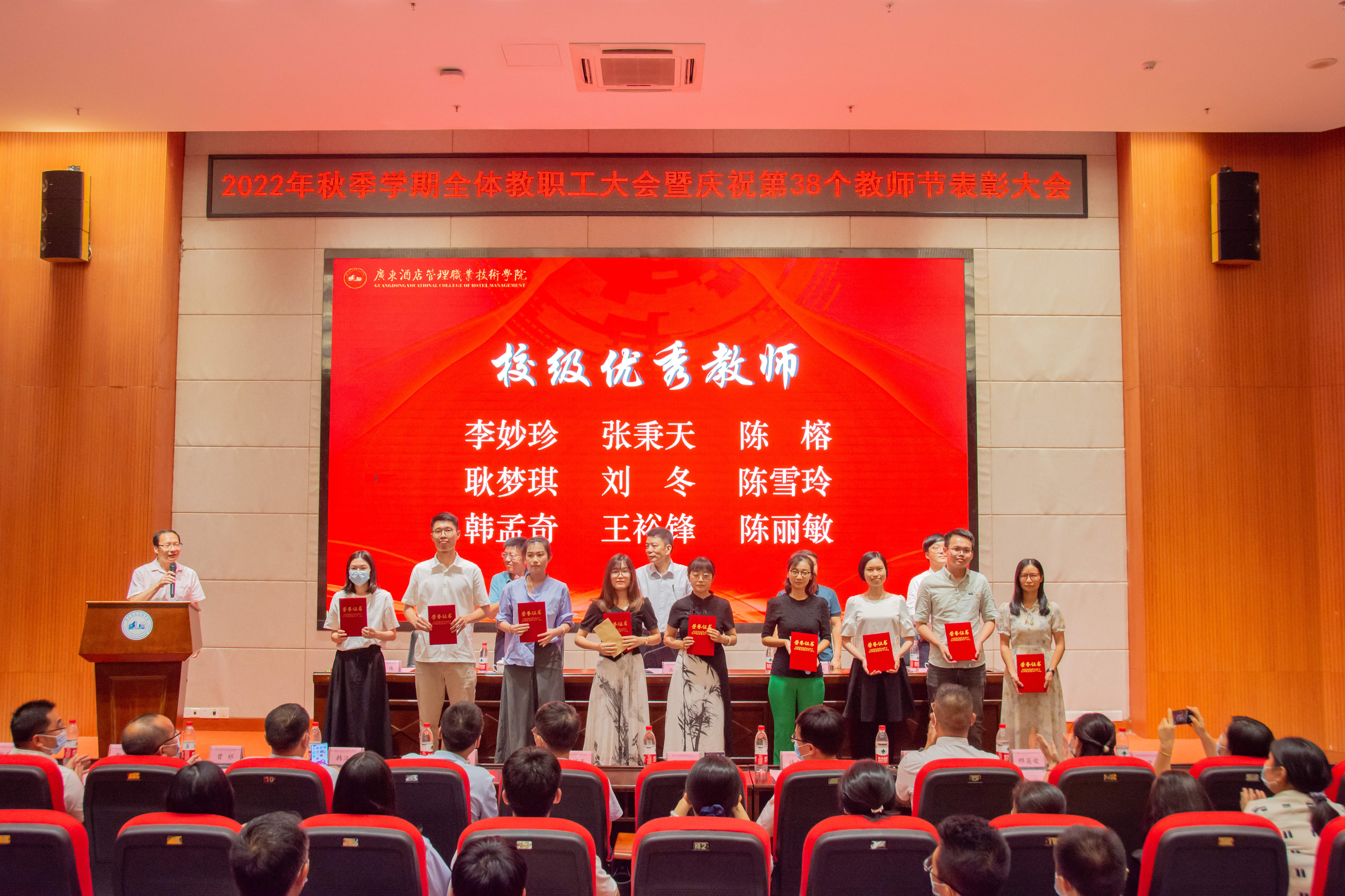 陈锦轩副校长宣读《广东酒店管理职业技术学院关于表彰优秀教师、优秀教育工作者的决定》