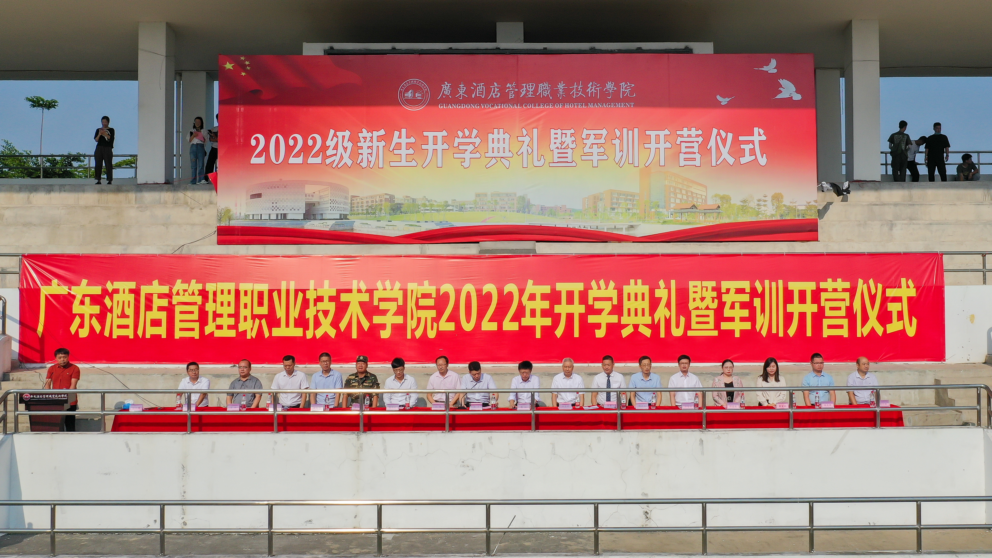 9月14日,广东酒店管理职业技术学院2022级新生开学典礼暨军训开营仪式隆重举行。来自五湖四海的新生汇聚在田径运动场,共同开启大学新篇章。学校校长汤才、副校长张天阳、副校长葛虹、党委副书记江伟、副校长陈锦轩、各二级学院、职能部门负责人及承训单位军训团团长孙勇明出席典礼。仪式由副校长张天阳主持。