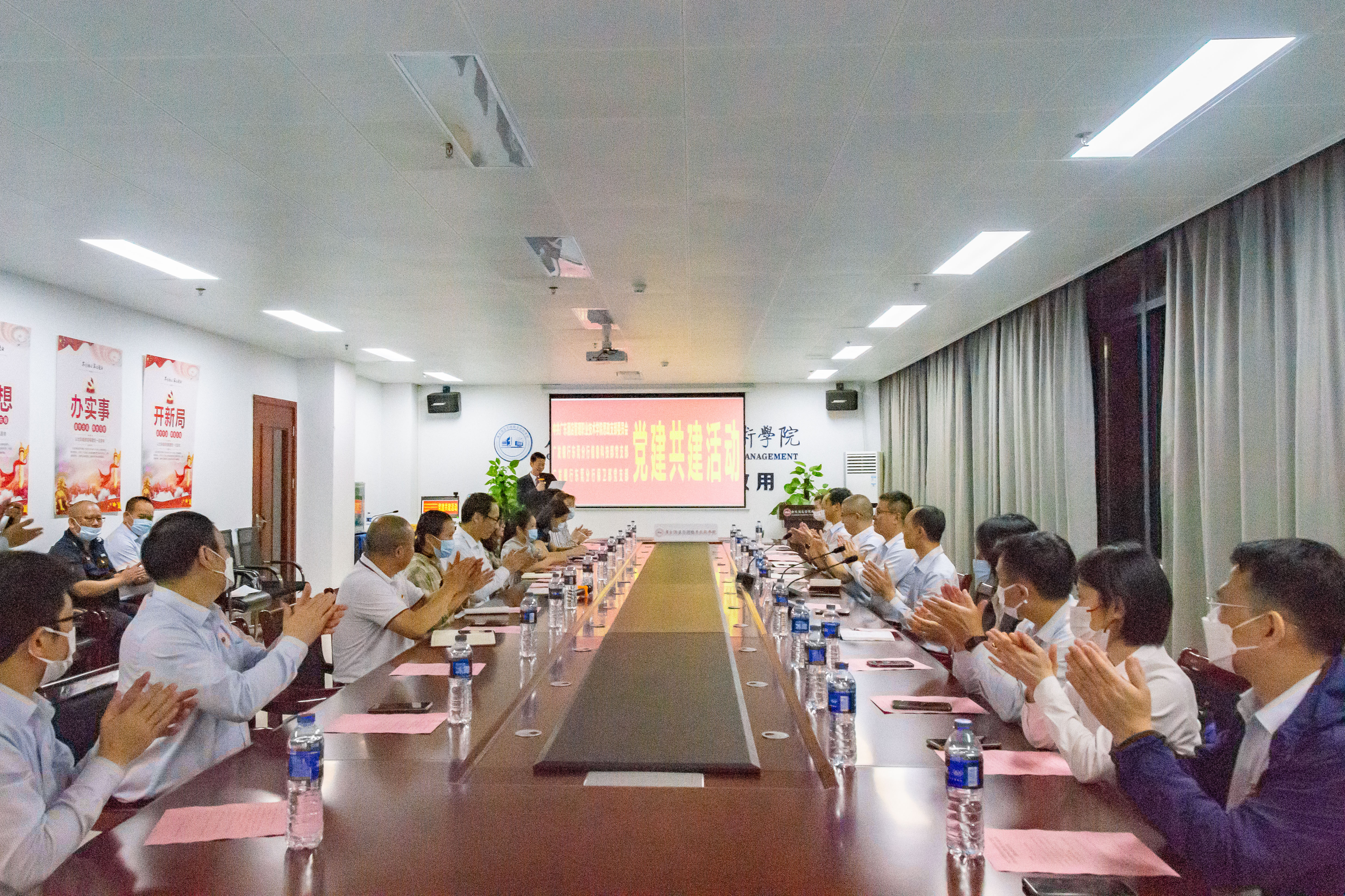 2023年3月23日,广酒学院思政党支部与广发银行东莞分行信息科技部党支部、保卫部党支部在广酒学院行政楼313会议室开展党建共建活动。广酒学院党委委员、副书记、思政党支部书记江伟,广发银行东莞分行党委委员舒旭亲临活动现场,广酒学院思政党支部和广发银行东莞分行信息科技部党支部、保卫部党支部共27名党员参加活动。